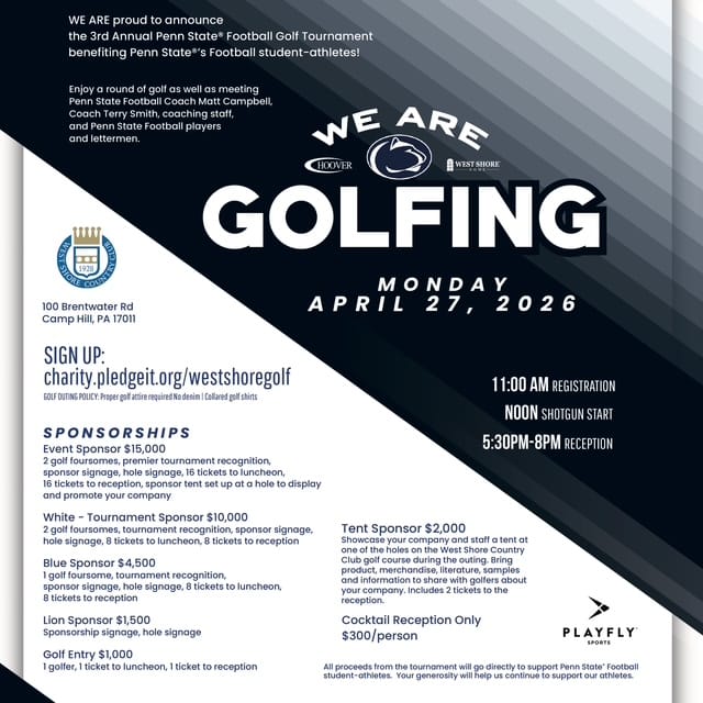🔺 Plan Ahead. Fans traveling to Penn State’s Blue-White Practice on April 25 should be aware of road closures and detours due to construction projects. Westbound drivers on Route 322 and I-80 Exit 161 will experience detours.